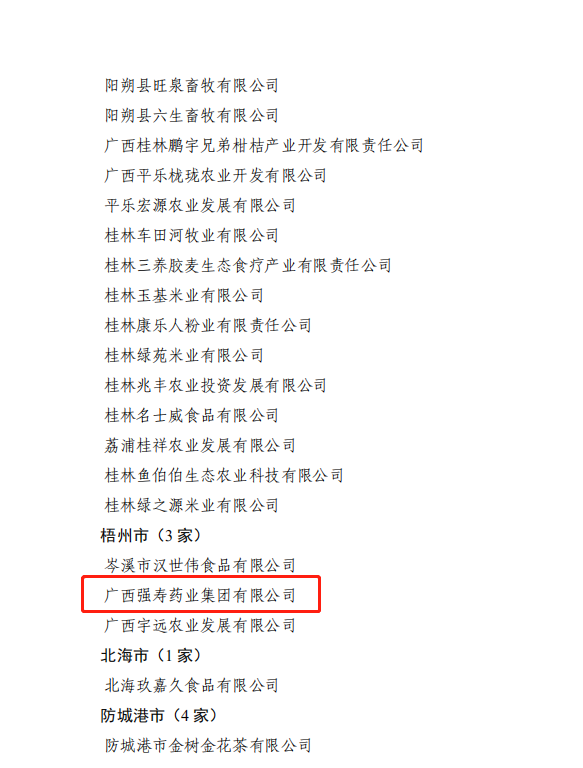 廣西強壽藥業(yè)集團榮獲“自治區(qū)級農(nóng)業(yè)龍頭企業(yè)”稱號